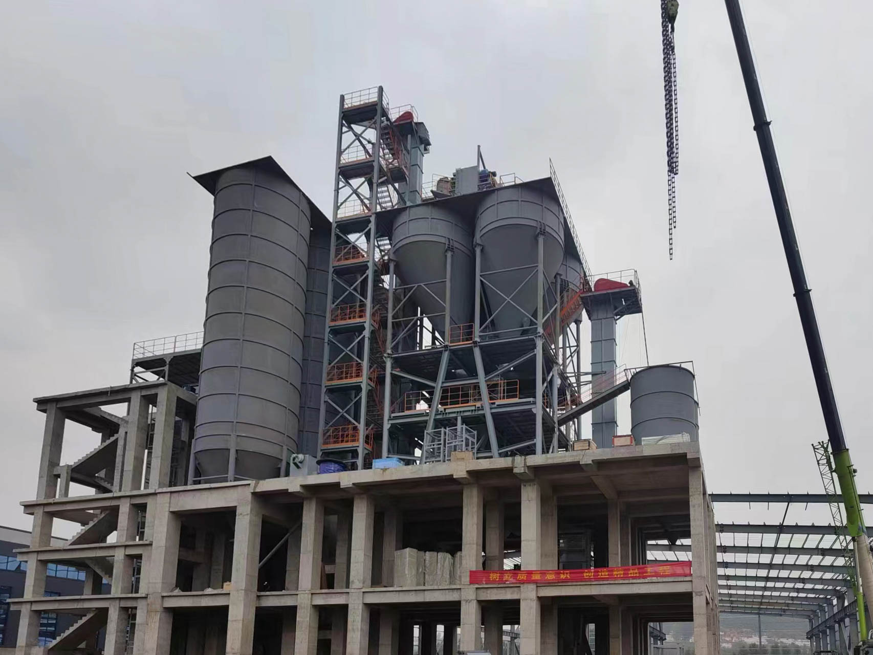 塔樓式干粉砂漿生產(chǎn)線:適合大規(guī)模生產(chǎn),生產(chǎn)品種多,效率高,運行成本低,產(chǎn)量大,結(jié)構(gòu)緊湊,占地面積小。